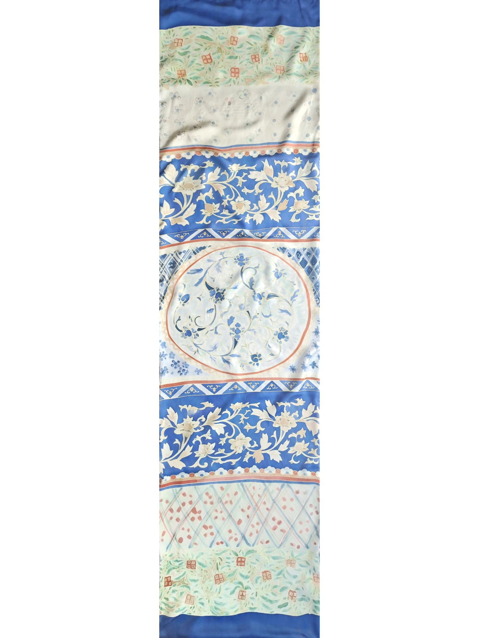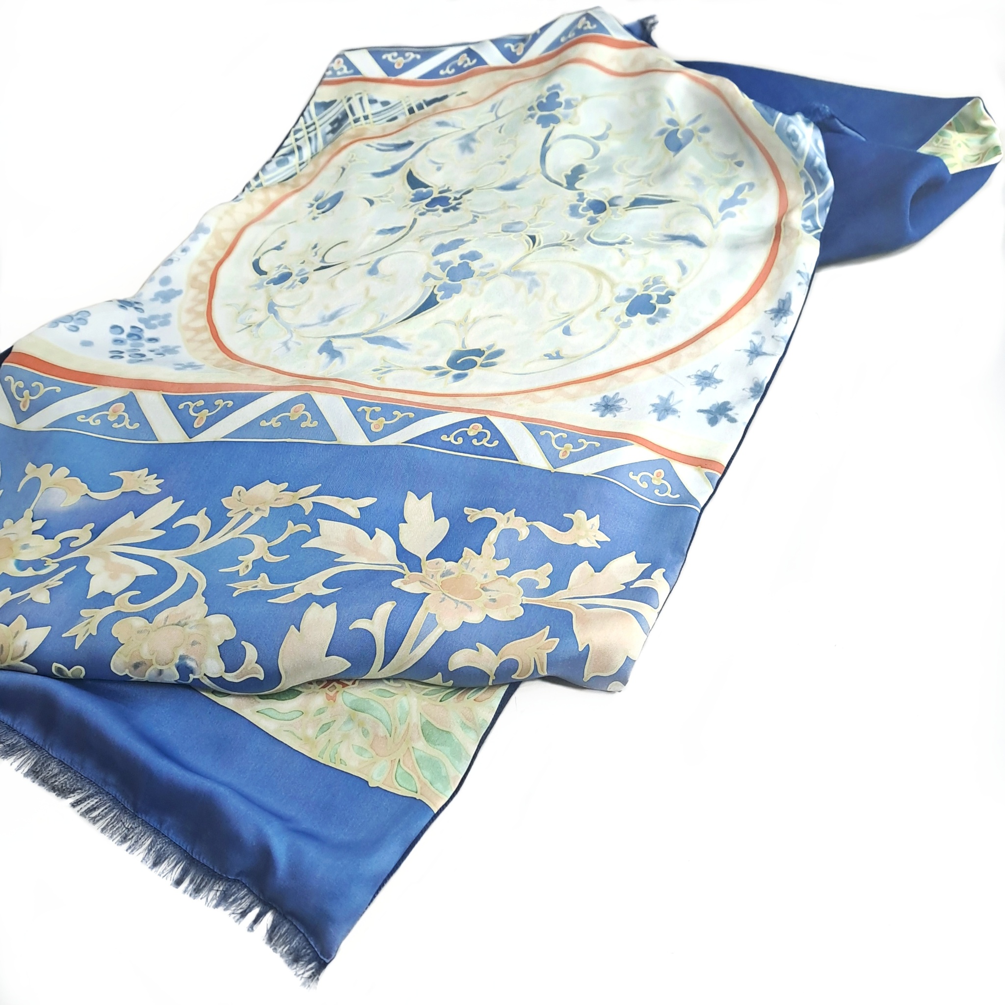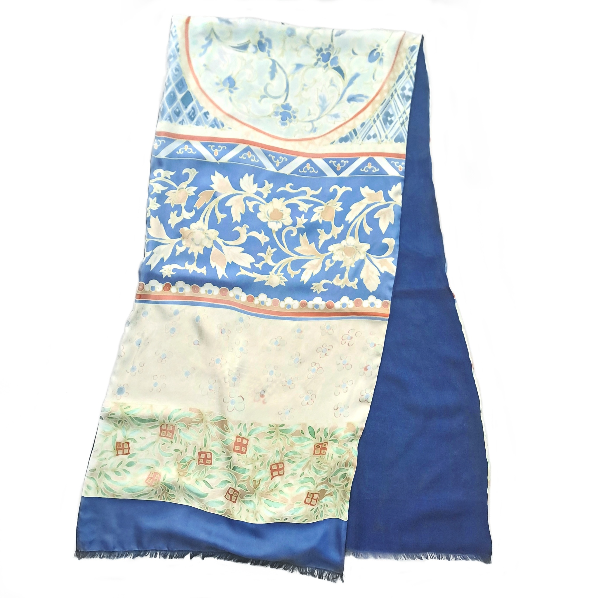 Двусторонний палантин шелк+ кашемир батик "Синий с дальних берегов"