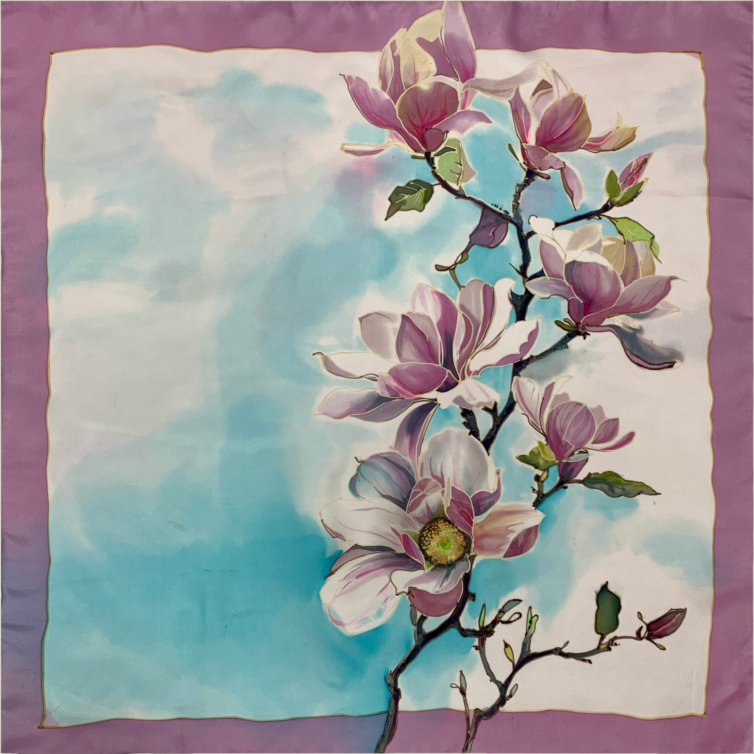 Шелковый платок батик "Магнолия".