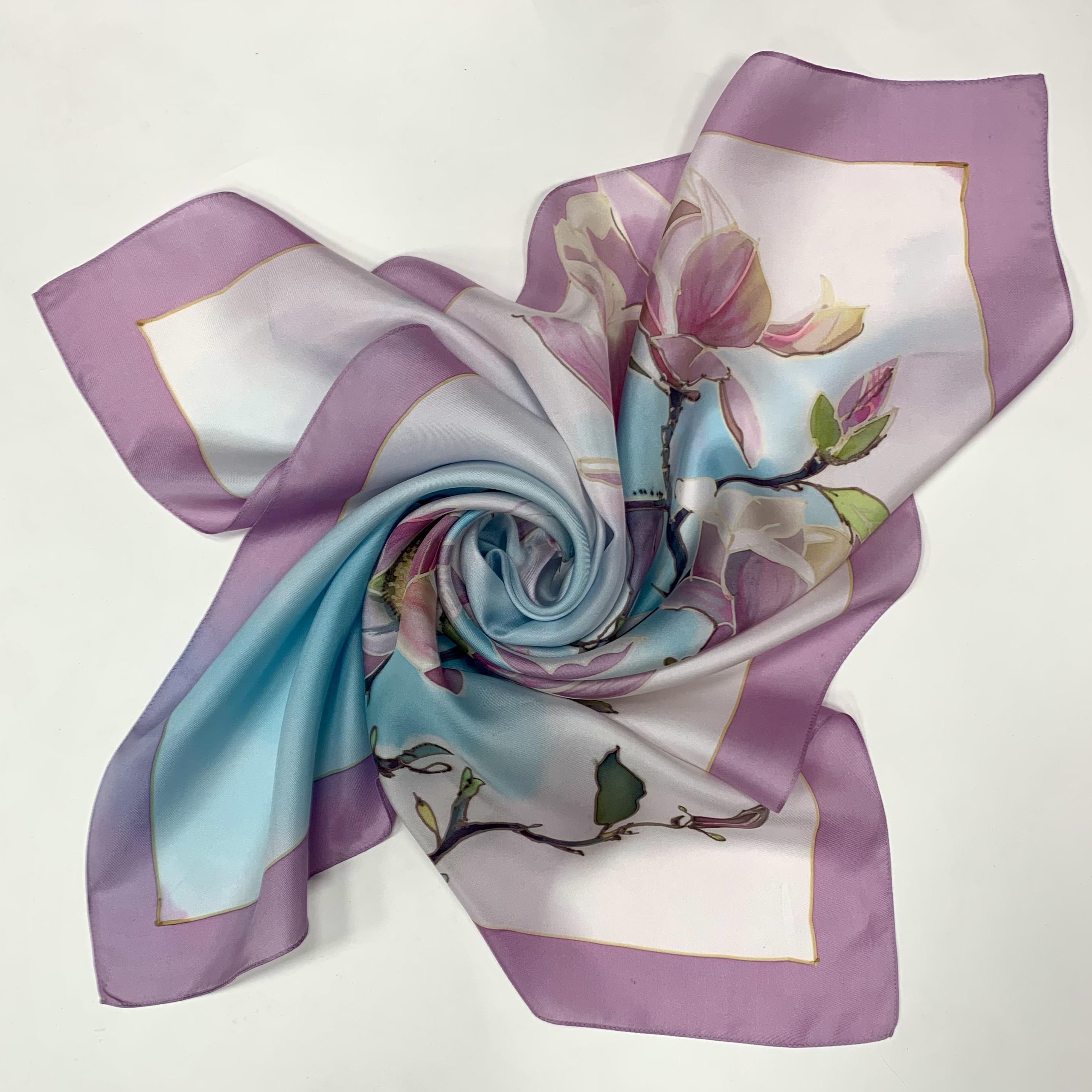 Шелковый платок батик "Магнолия" 65х65 см