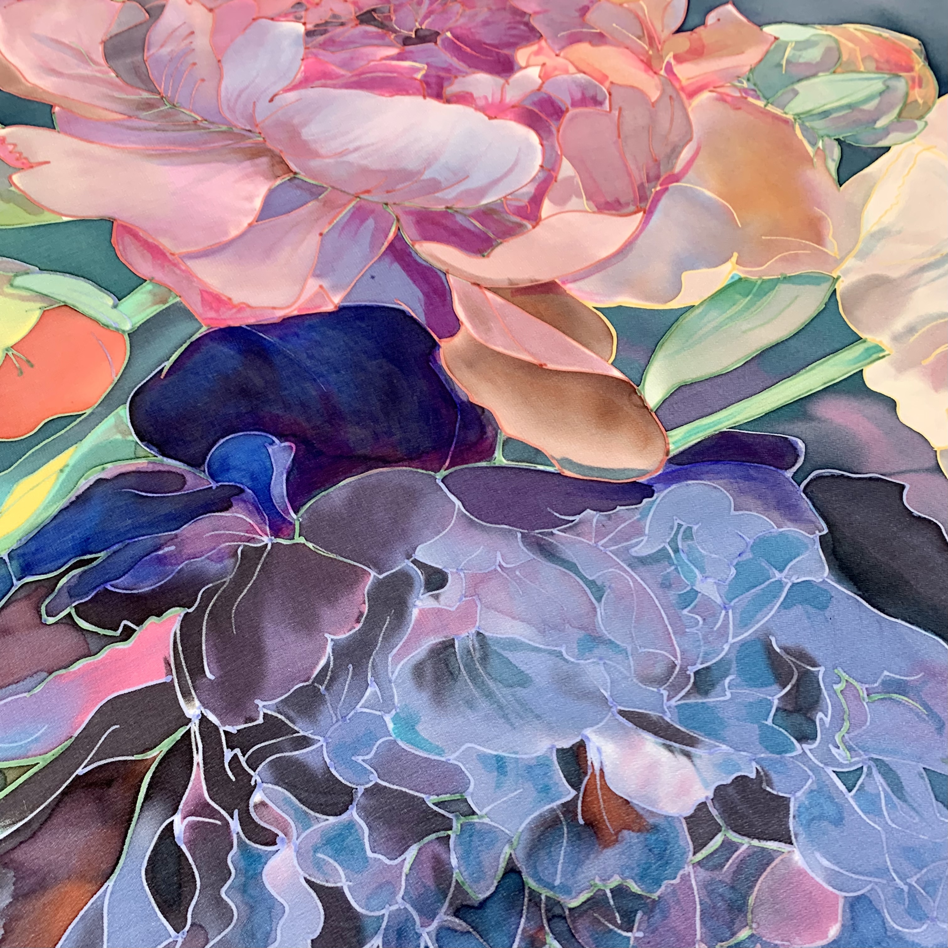 Материал: натуральный шелк. Вы можете выбрать атлас, крепдешин, шифон, твил или кашемир.